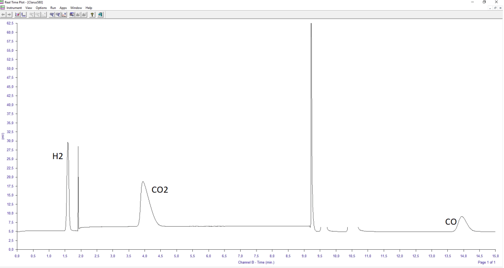 In this case, I also measured the gas composition in the cells to check for closed cells and to estimate the thermal conductivity, which is not published. The cells are indeed 100% closed and I estimate the thermal conductivity to be 0.046 W/mK for the 115 kg/m3 density and 600 kPa compressive strength. Although recycled glass is used without remelting, JAP achieved a low H2 content below 3%. In view of the low energy cost, labour cost and recycled glass use, I estimate the production cost of this material between 50 and 70 €/m3. In the Middle East, such a producer can be a game changer. A chromatogram is given hereunder.